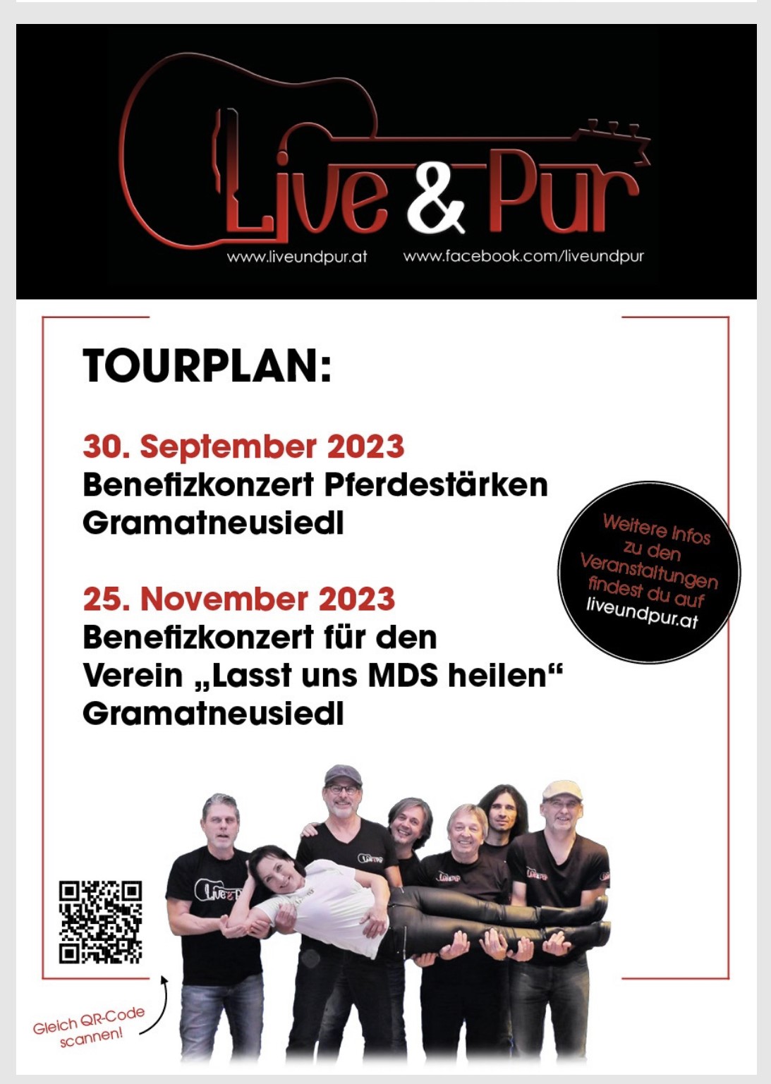 The band Live & Pur, who has already given several benefit concerts for social causes and likes to put itself at the service of good causes, will give a concert for the association Lasst uns MDS heilen on November 25, 2023 in Gramatneusidl (Austria).