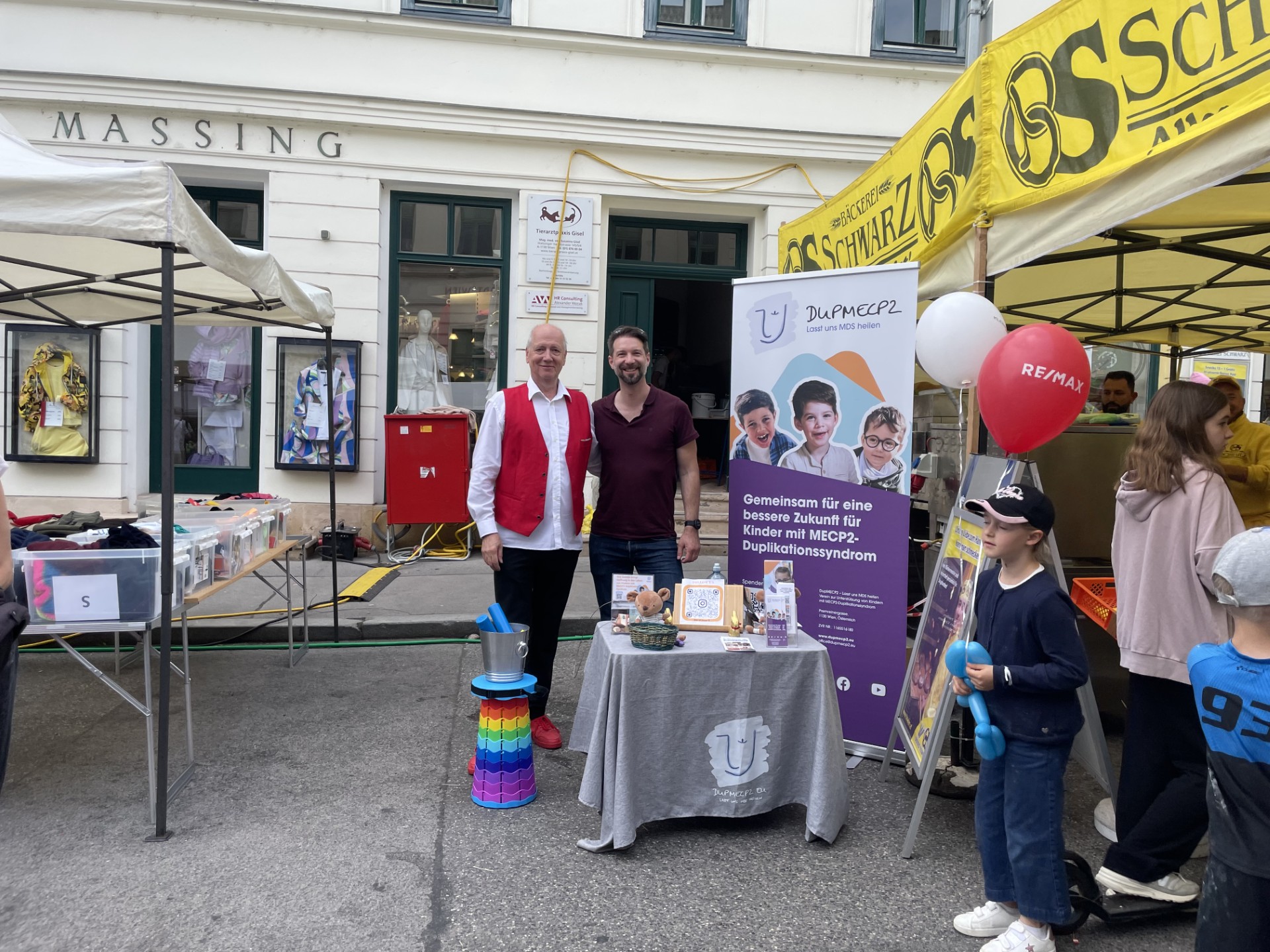 Le Grätzlfest en Ober St. Veit es una popular fiesta familiar organizada por los Kaufleute Ober St. Veit. Este año tendrá lugar el 24 y 25 de mayo en Ober St Veit (Viena, Austria). El acto incluye un entretenido programa y una gran tómbola, parte de cuya recaudación se destinará a la organización benéfica DupMECP2 Lasst uns MDS heilen. También será una oportunidad para dar a conocer el síndrome de duplicación MECP2 y saber más sobre nuestras misiones en una entrevista con los copresidentes y fundadores. Caroline y David Covini. Los fundadores también tendrán un stand. No dude en pasarse, charlar y hacer un donativo para ayudar a la investigación.